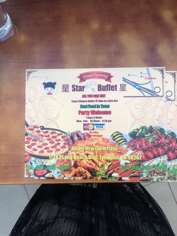 Introducing the menu at Star Buffet, located in Lynwood, CA, offers a diverse selection of Chinese cuisine, sushi, and a variety of vegetarian options. Known for its classy ambiance and attentive staff, Star Buffet provides a pleasant dining experience. Customers like Juan P. praise the friendly staff and delicious food, while Jose H. appreciates the calm atmosphere and noteworthy dishes like cooked Jalapeños. The establishment also features TVs for entertainment. Star Buffet is a great spot for those looking to enjoy a mix of flavors in a welcoming setting.